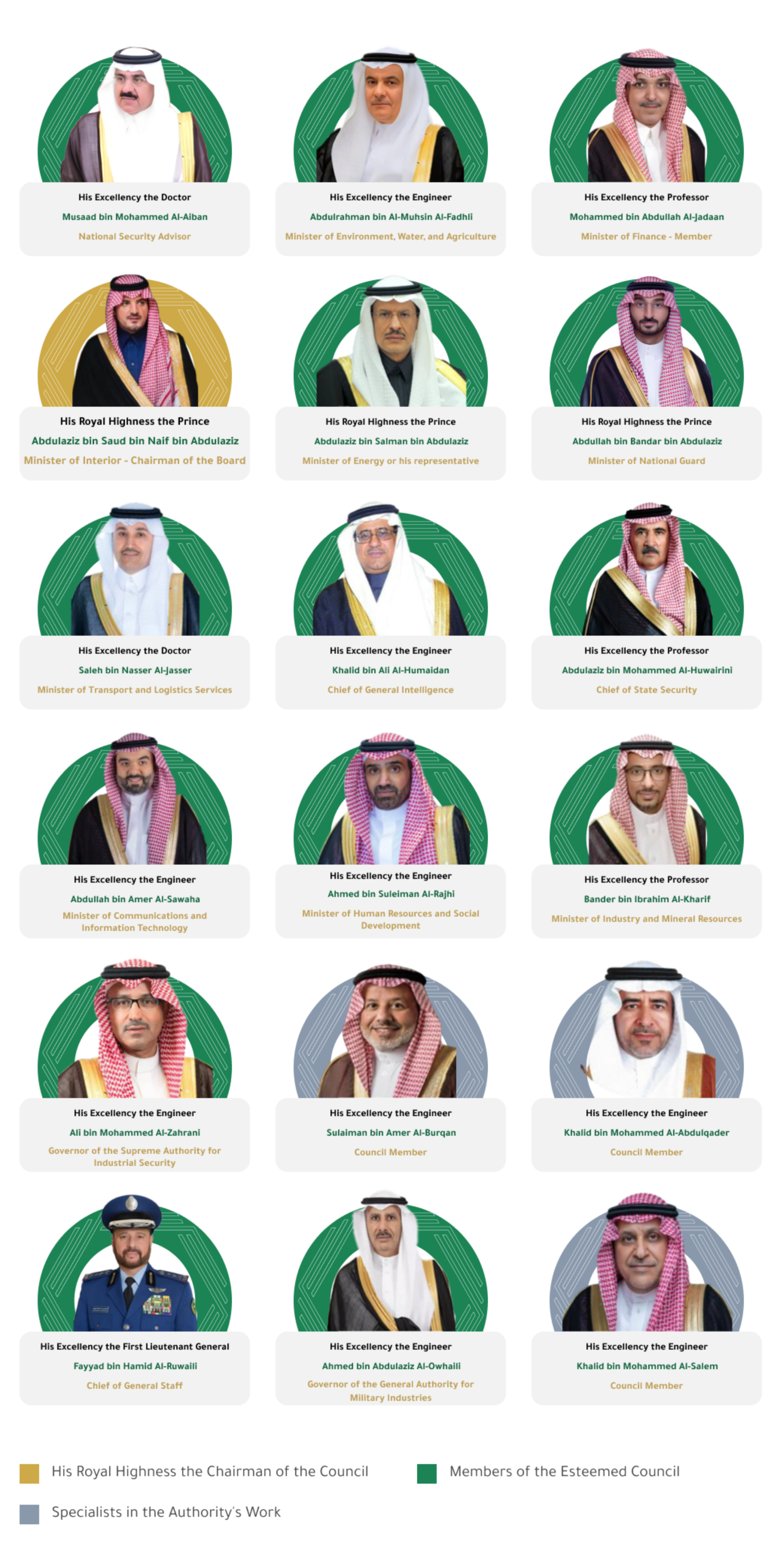 Given the critical importance of these facilities and the leadership’s keenness to enhance their security and stability, Royal Decree No. (439/8) dated 27/2/1397H was issued, approving the formation of the Supreme Authority for Industrial Security, chaired by His Royal Highness the Minister of Interior, with membership including royal and senior officials representing relevant authorities, to serve as a national high-level reference for industrial security matters.